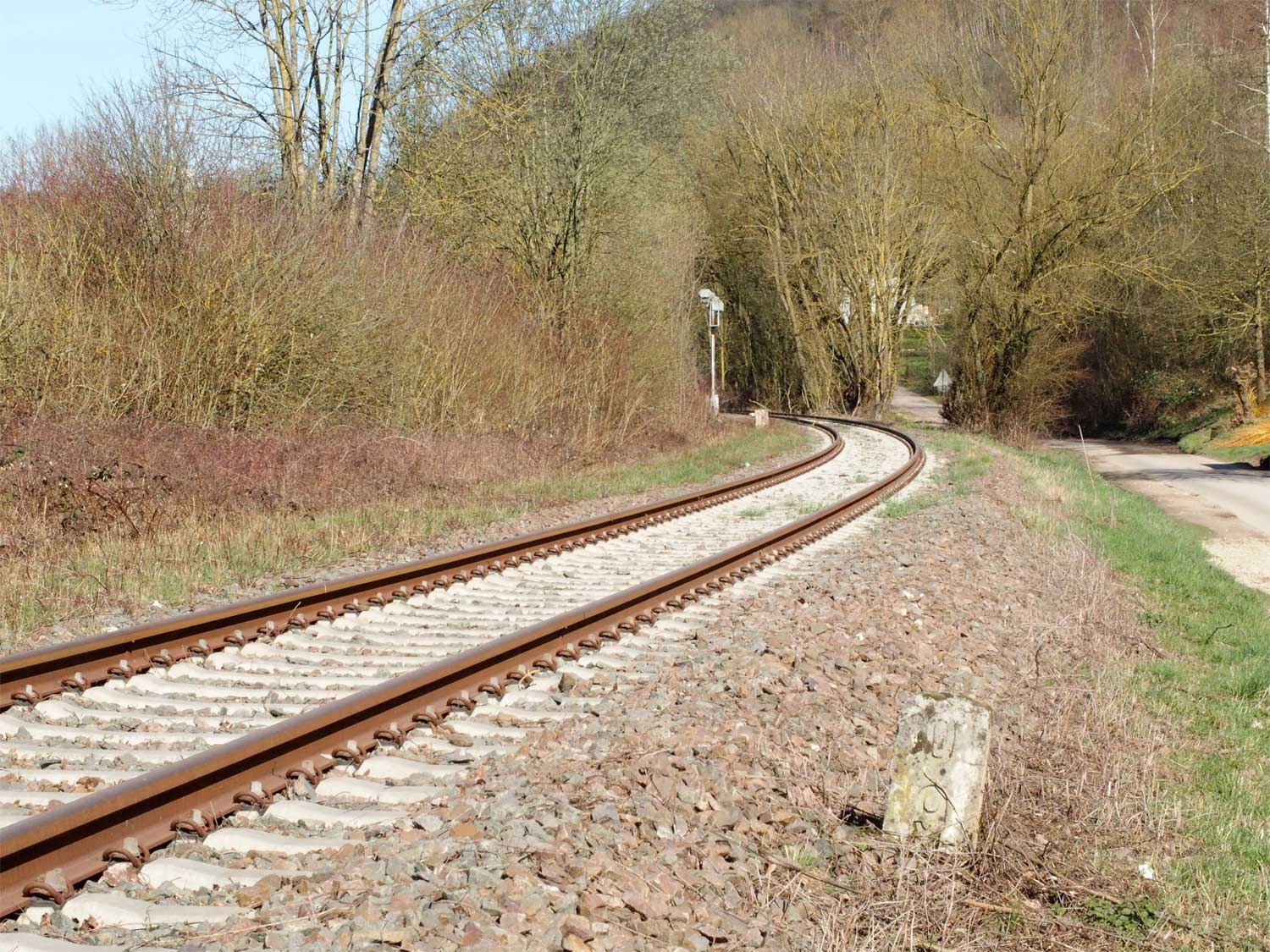 Gleisende bei km 1,7 zwischen Trier und Ruwer DB - Blick Richtung Türkismühle