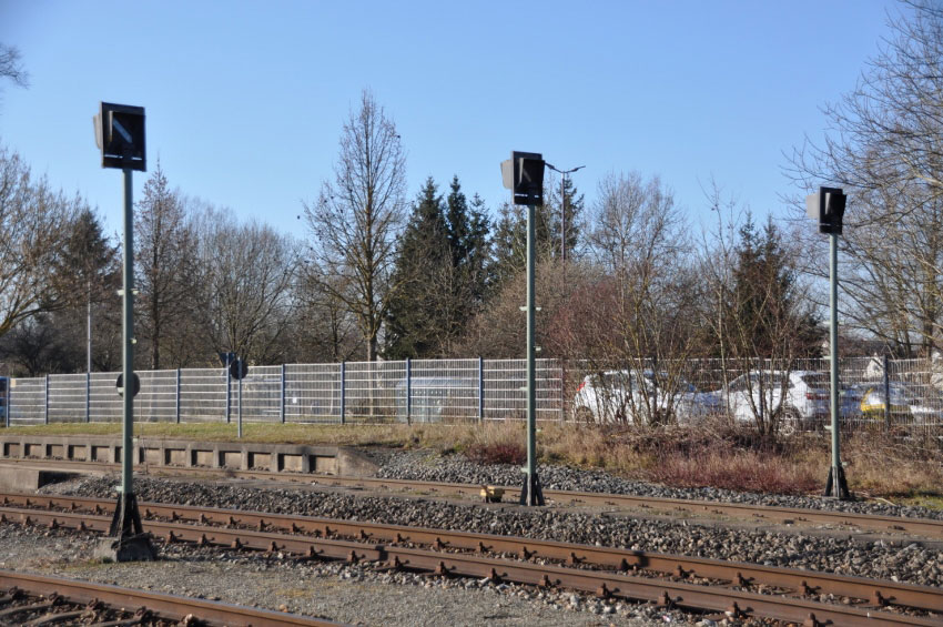 Für den rechten Fahrtanzeiger fehlt eigentlich das Gleis. Offenbar gab es früher noch ein Gleis 1a.
