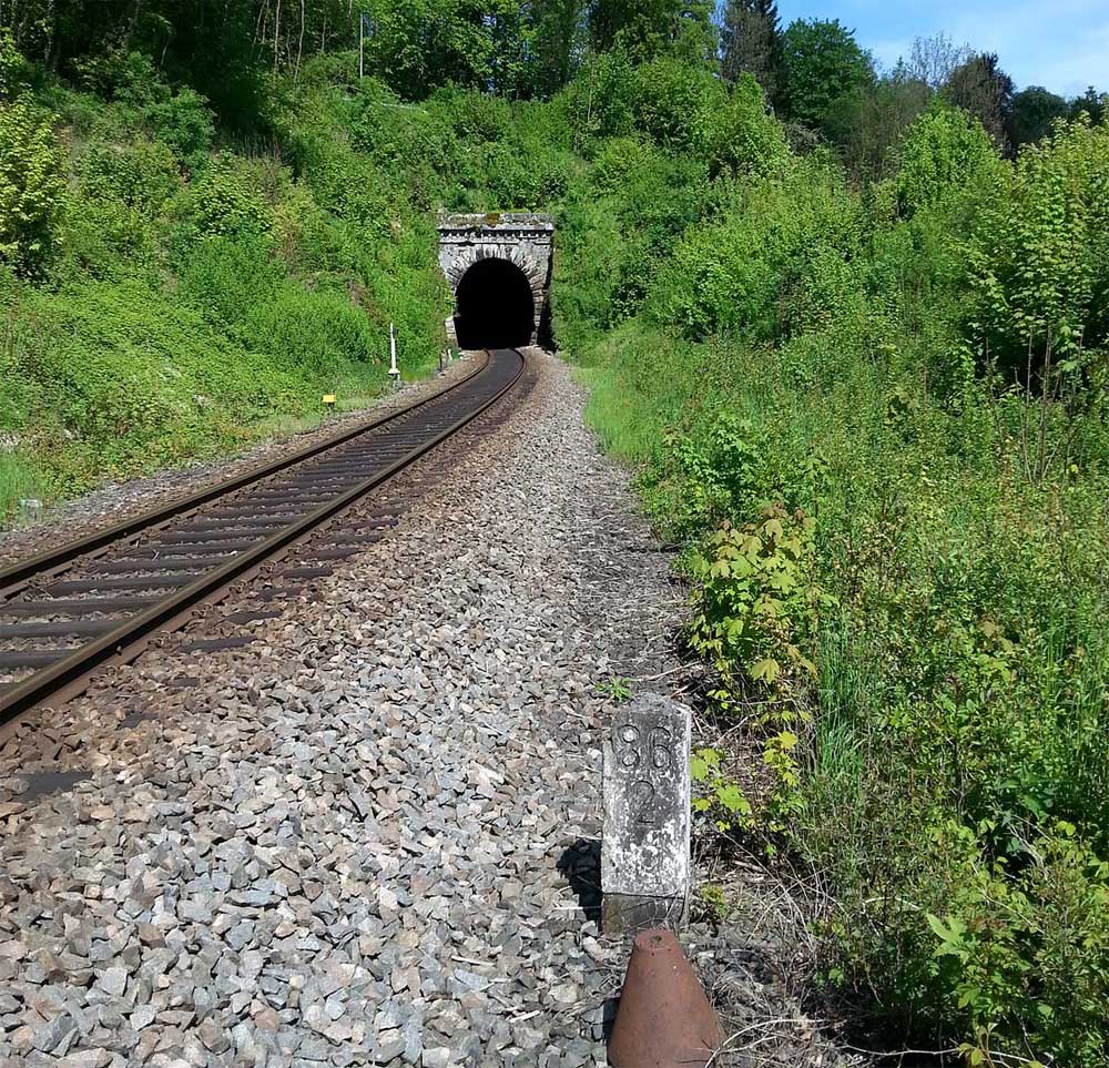 Im Hintergrund das Südostportal des Schloßbergtunnels