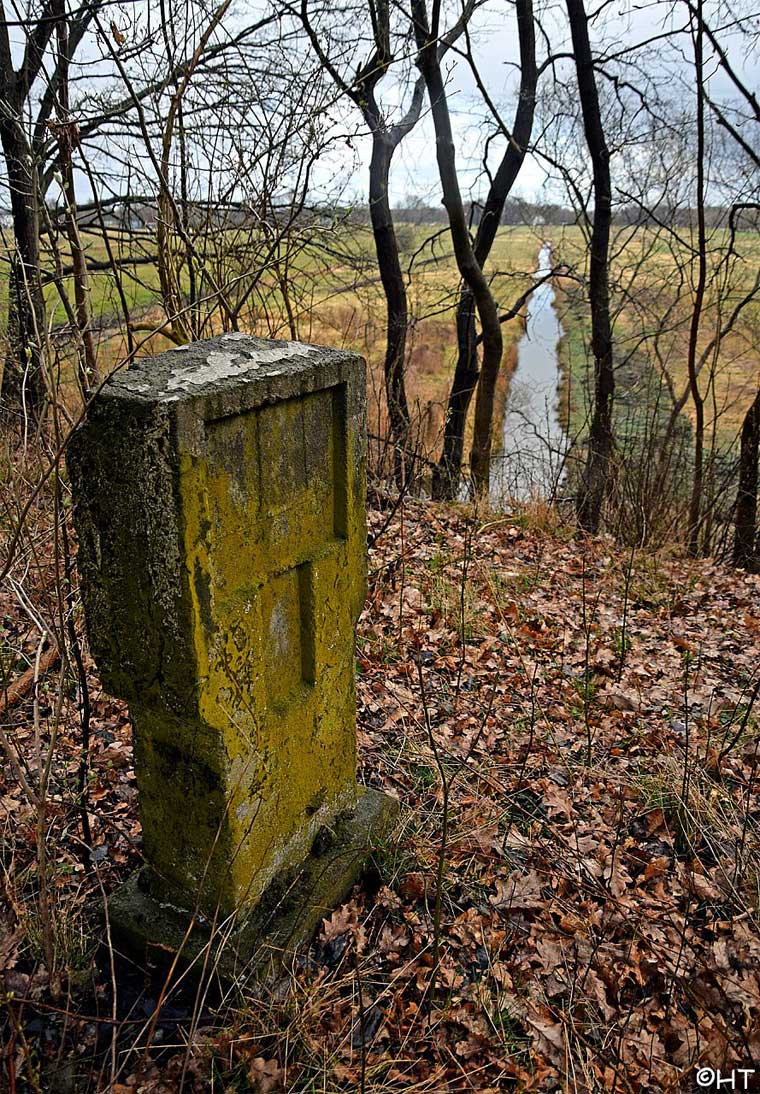 km 352,0 (links, Tafeln und Stein) an den Norderelbbrücken