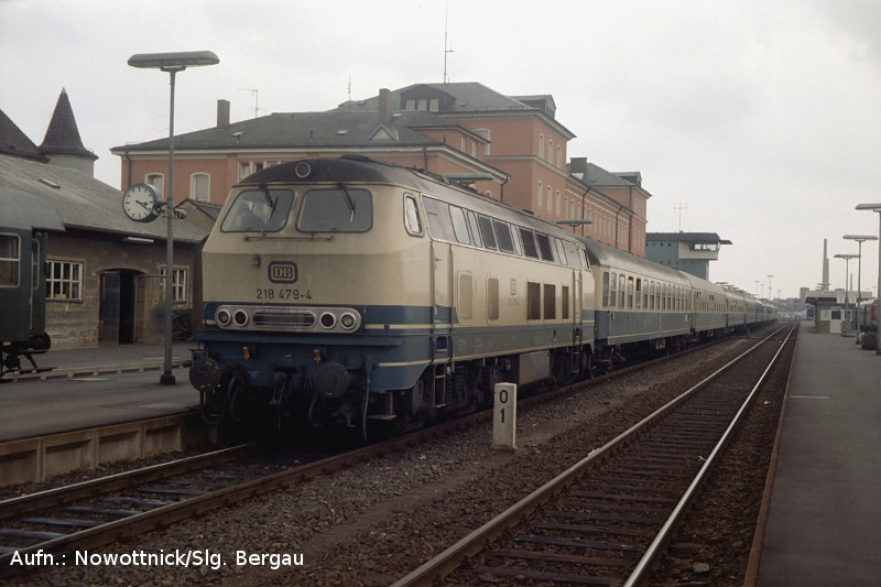 km 0,1 in Weiden (Oberpf) - 218 479 mit einem Schnellzug