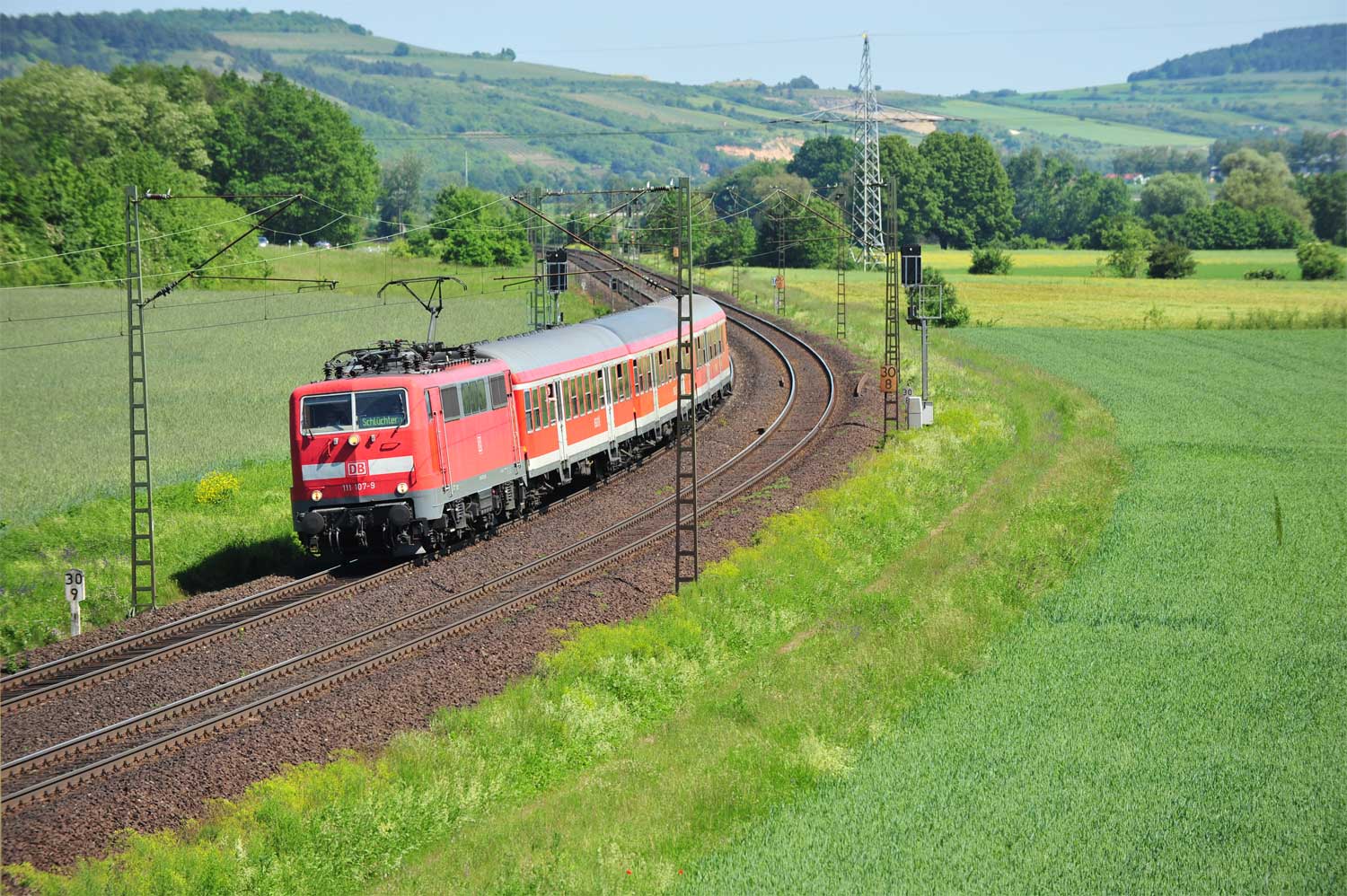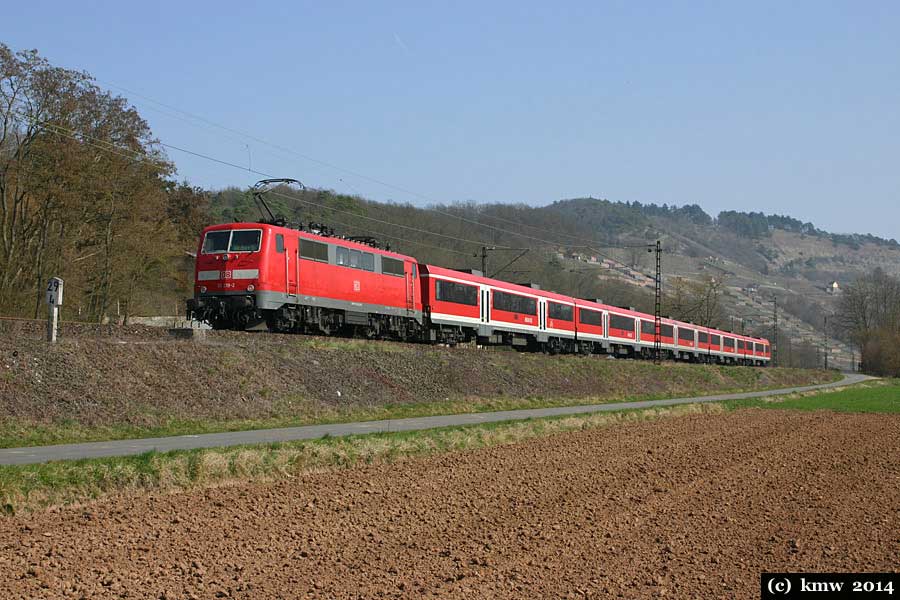 km 39,0 in Gemünden (Main) - 111 056 schiebt RB 58379 (Aschaffenburg-Gemünden)