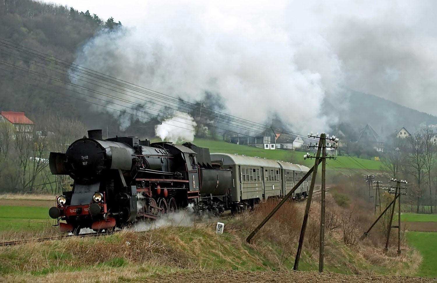 km 65,5 bei Klęczany (Kleczany) - TY42-107 mit S 33300 Foto: