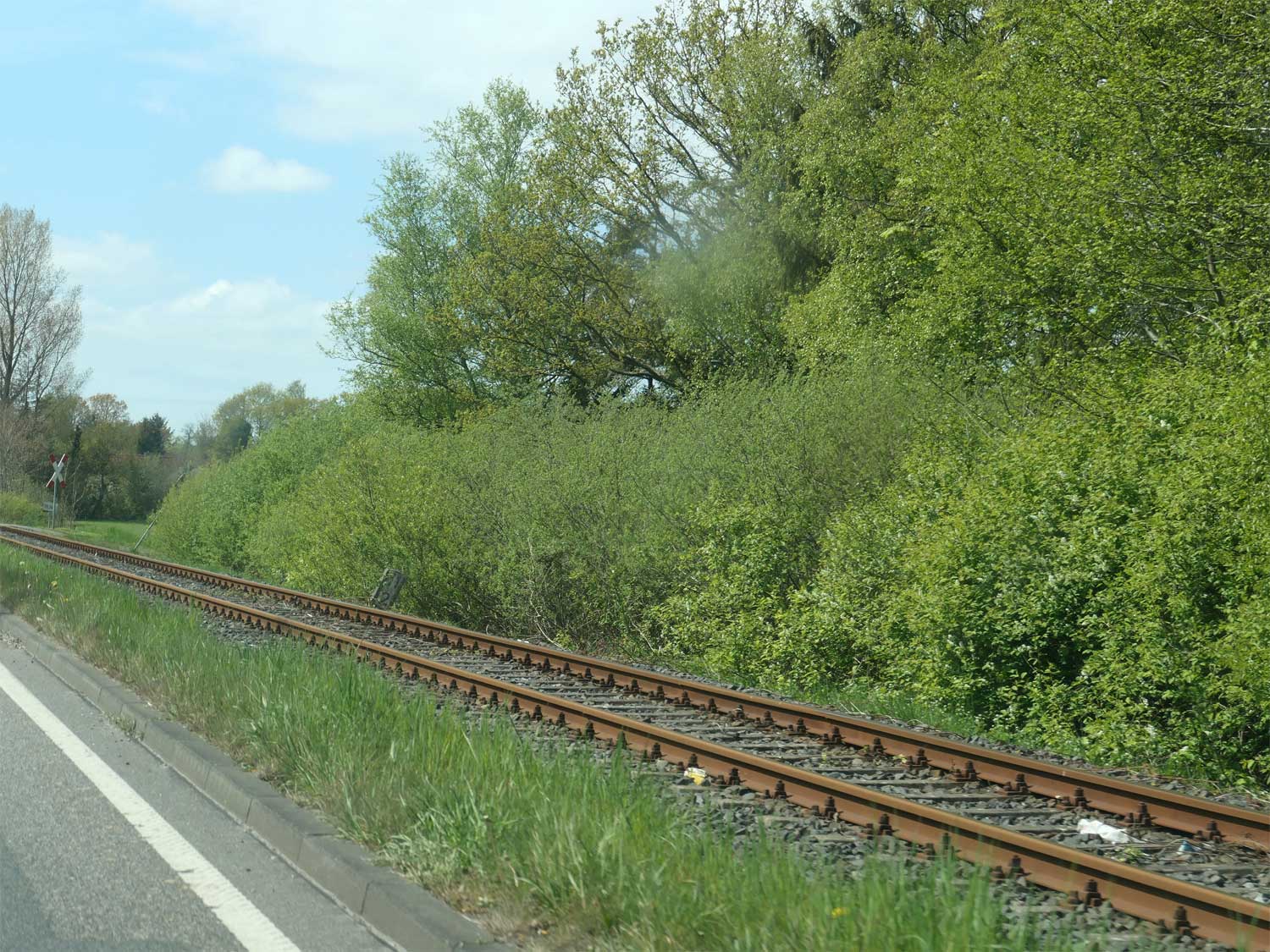 BÜ km 9,369 (verdeckt); BÜ km 9,377 und km 9,4 zwischen Moordorf und Walle - Blick Richtung Abelitz