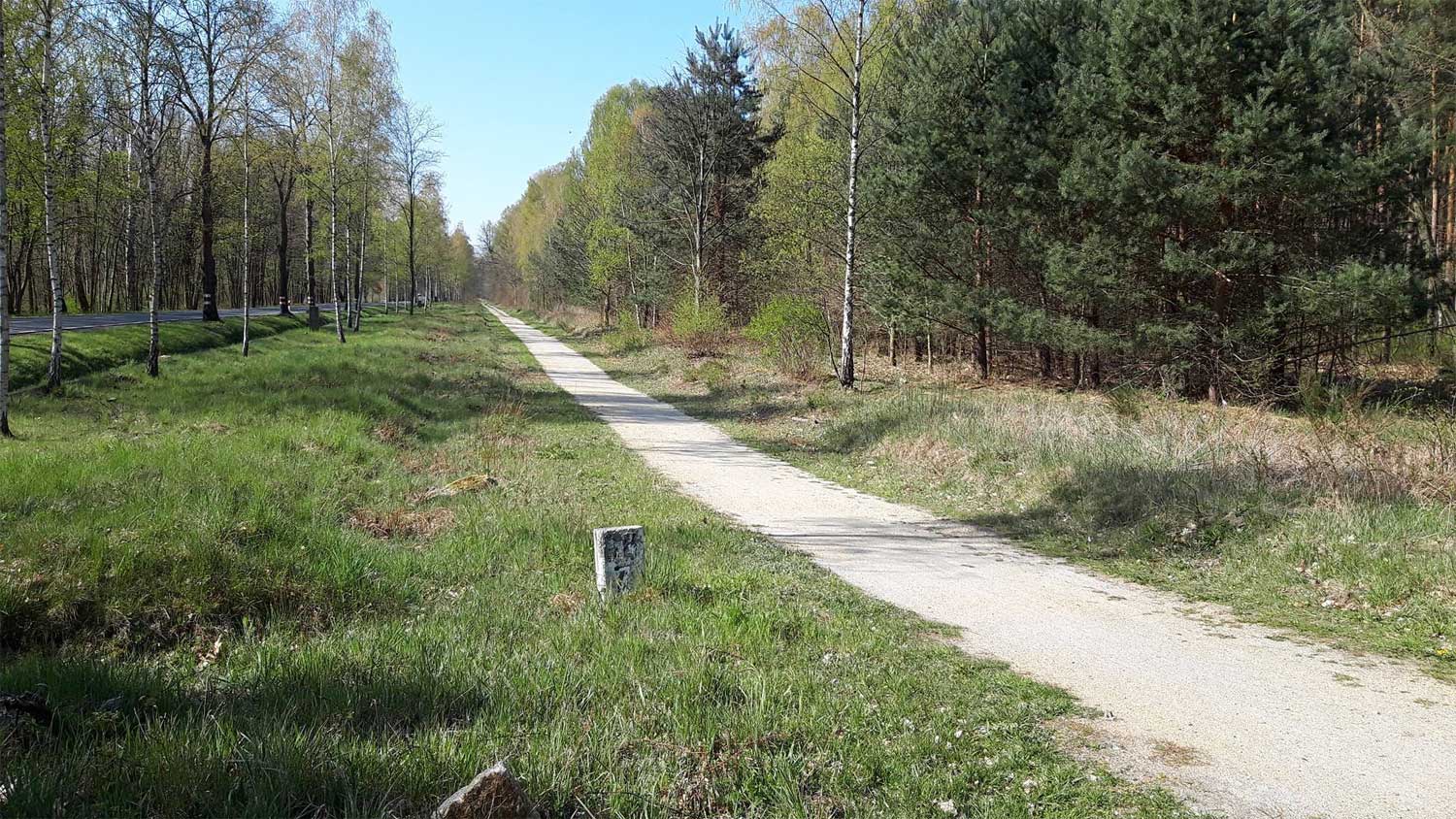 Grenze zwischen Muskau und Łęknica (Muskau Ost, Lugknitz)