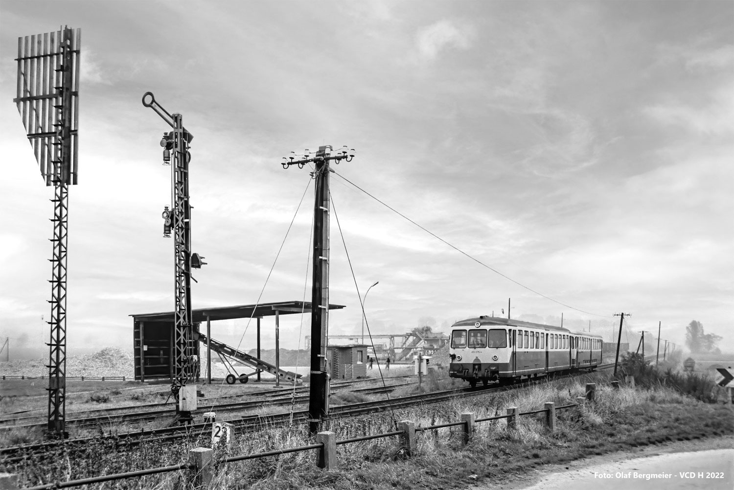 Die Konstruktion hinter dem Einfahrsignal dient der besseren Erkennbarkeit des Signales.