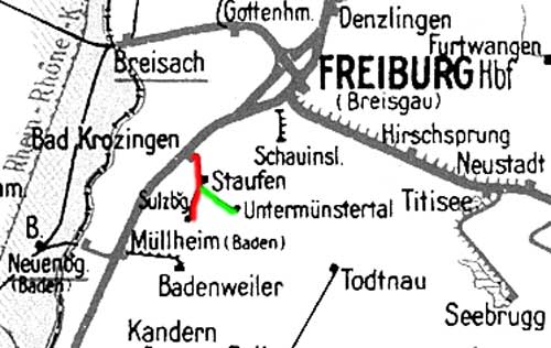 Stand der Kilometrierung: 1945 Bad Krozingen 0,0 - Staufen 5,2 -Sulzburg 11,0 Staufen 0,0 - Untermünstertal 5,8