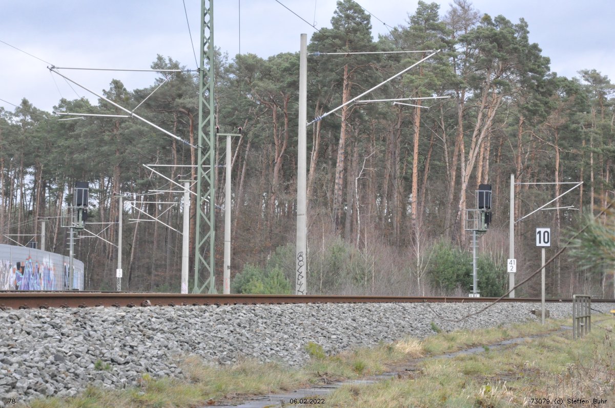 | Abzw Bohnsdorf West | 1,81 | km 40,70 der Strecke Abzw Glasower Damm Nord 26,77 - Abzw Selchow Süd 30,78 - Berlin Flughafen BBI 34,50 - Abzw Bohnsdorf Süd 42,07 (6151) |