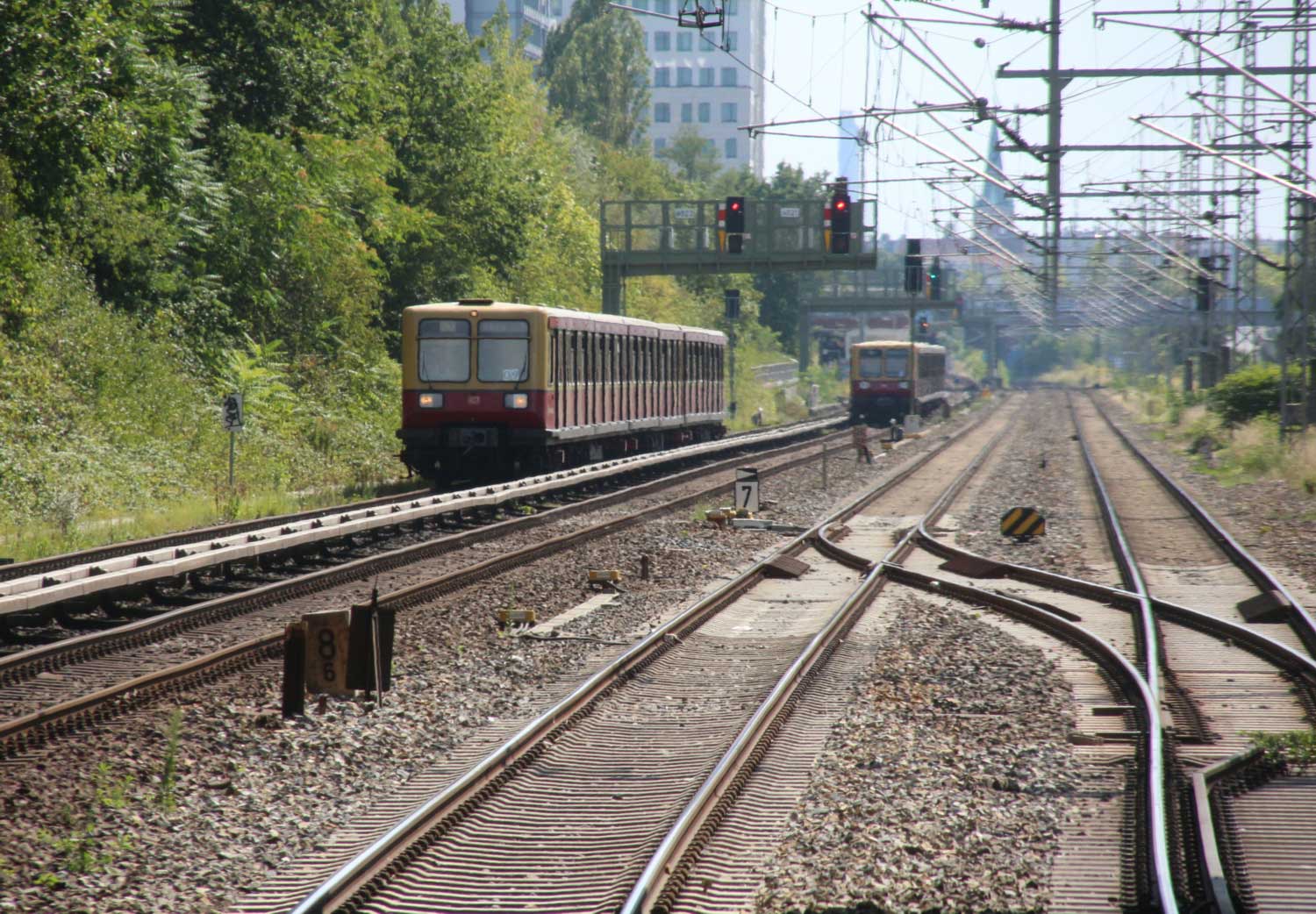 km 32,4 (Fern- bzw. Güterbahn links und S-Bahn rechts) in Westend - 485 097