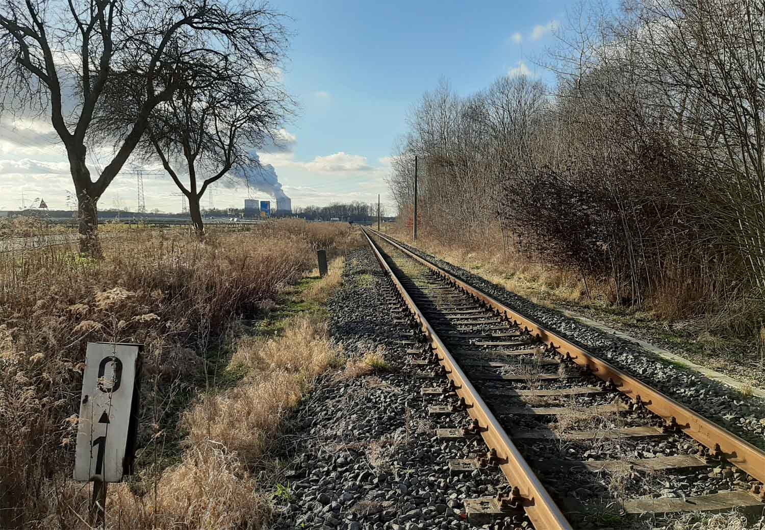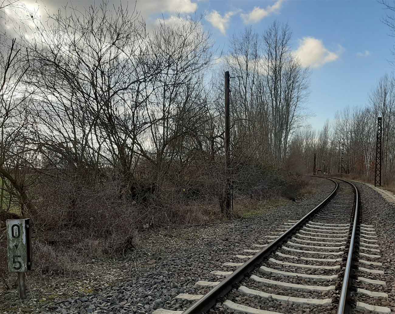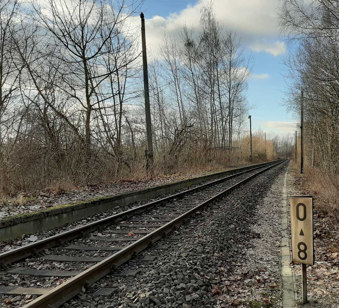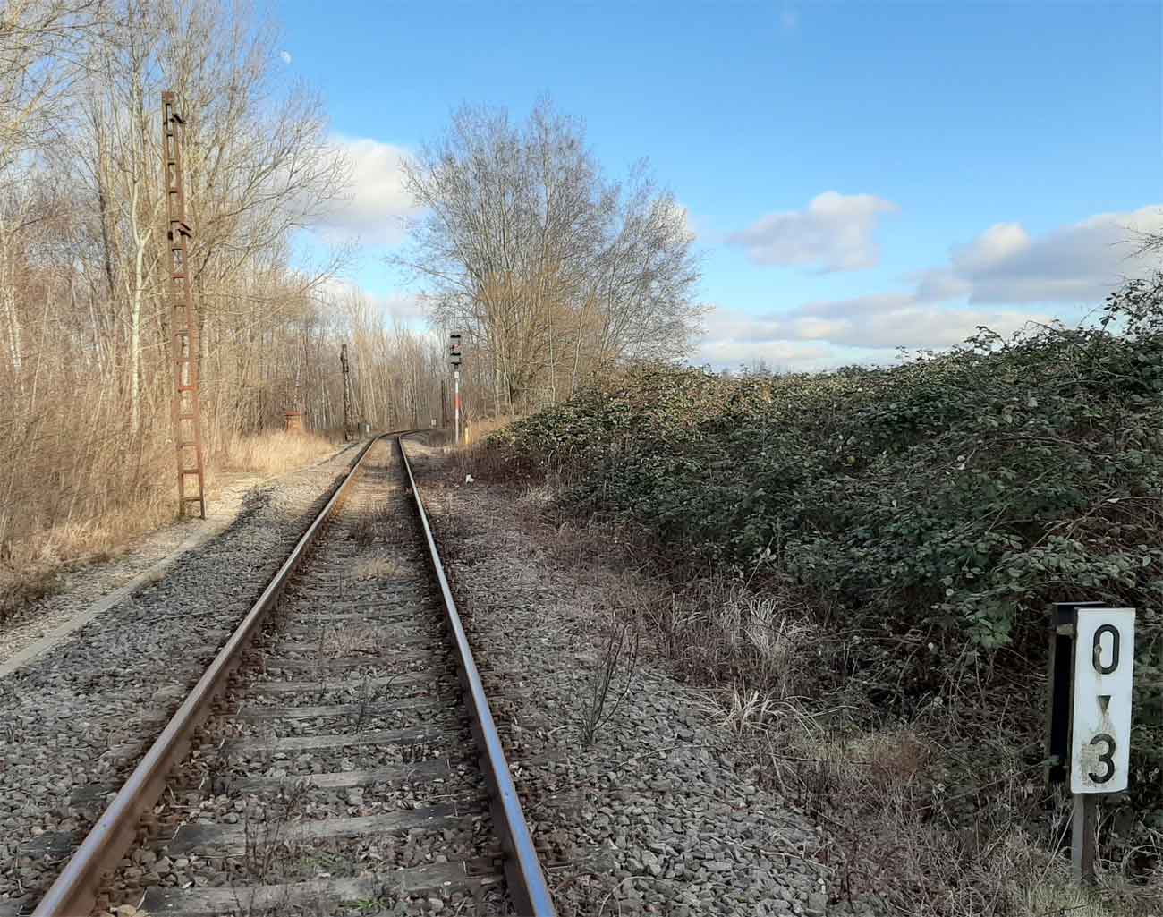 km 0,0 der Anschlussbahn - Blick Richtung Espenhain