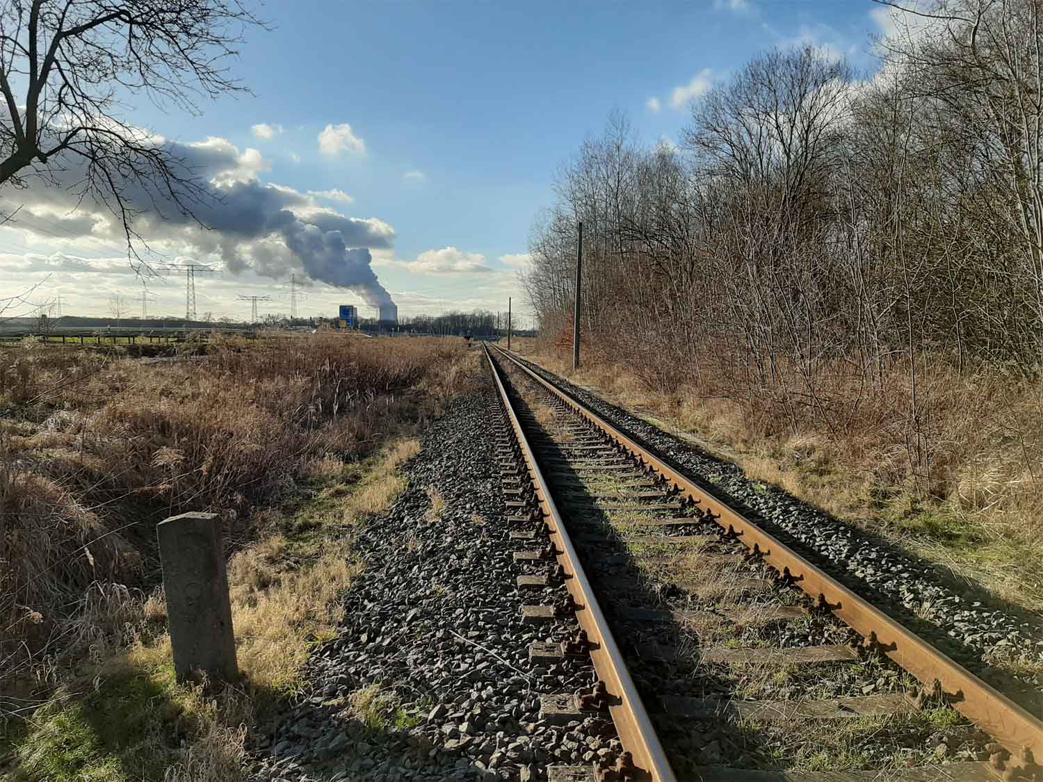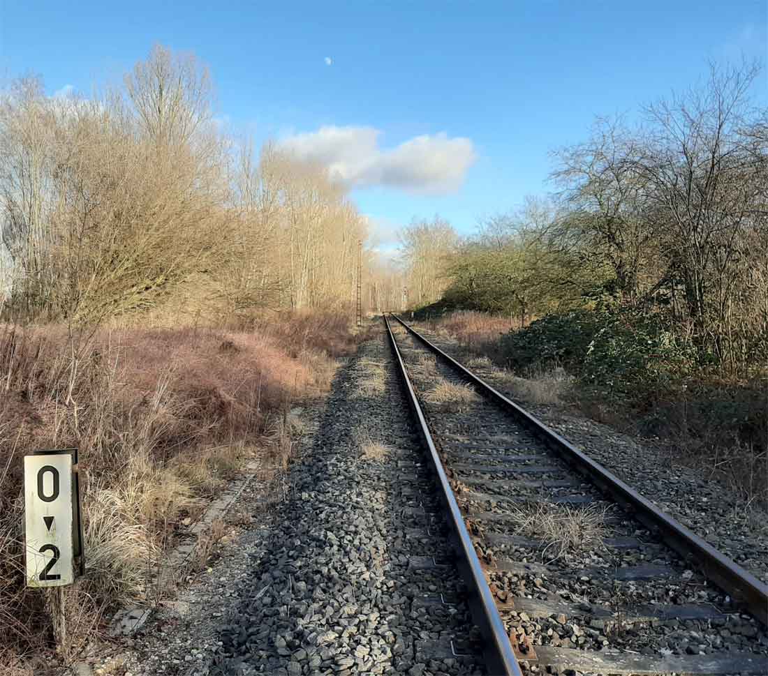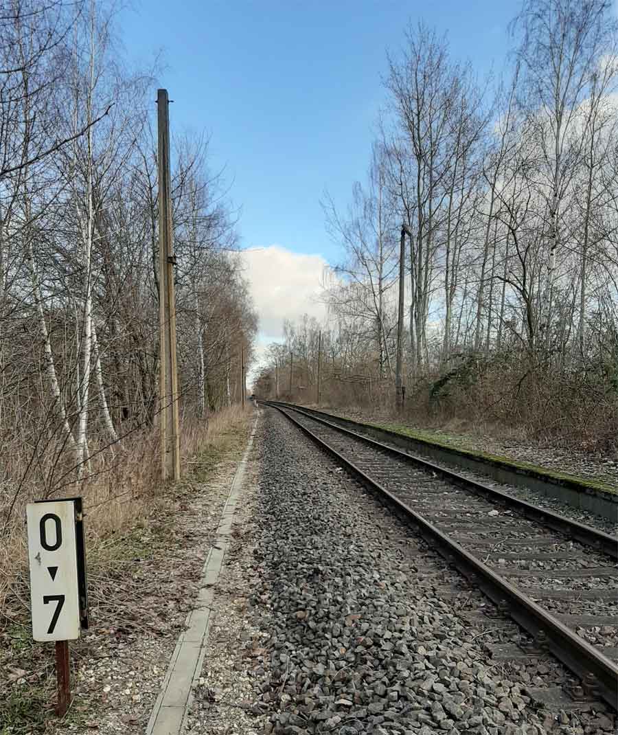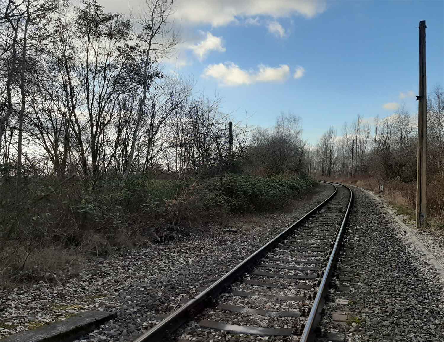 km 0,0 der Anschlussbahn - Blick Richtung Espenhain