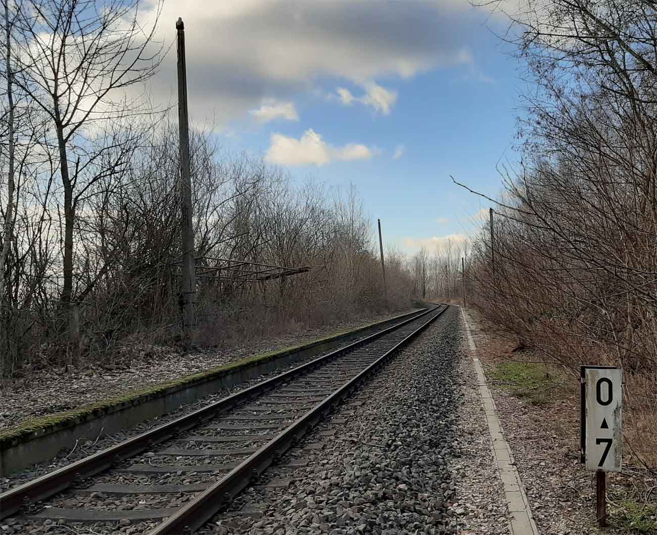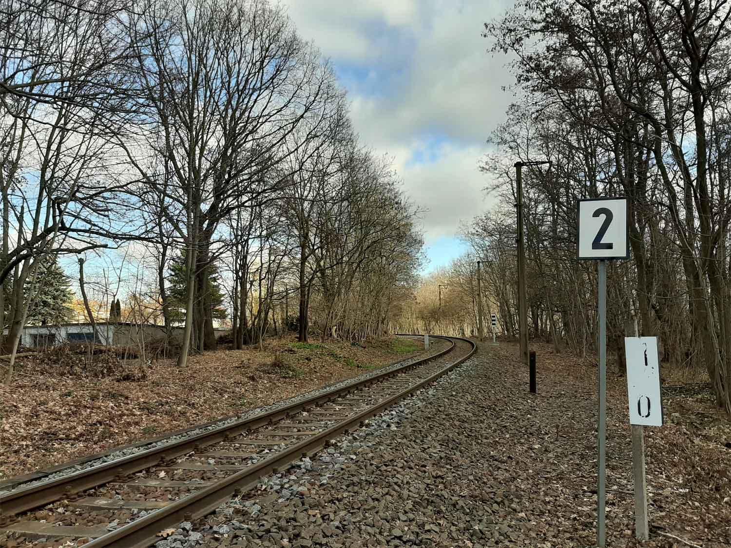 km 2,2 in Espenhain Werkbahnhof - Blick Richtung Streckenende