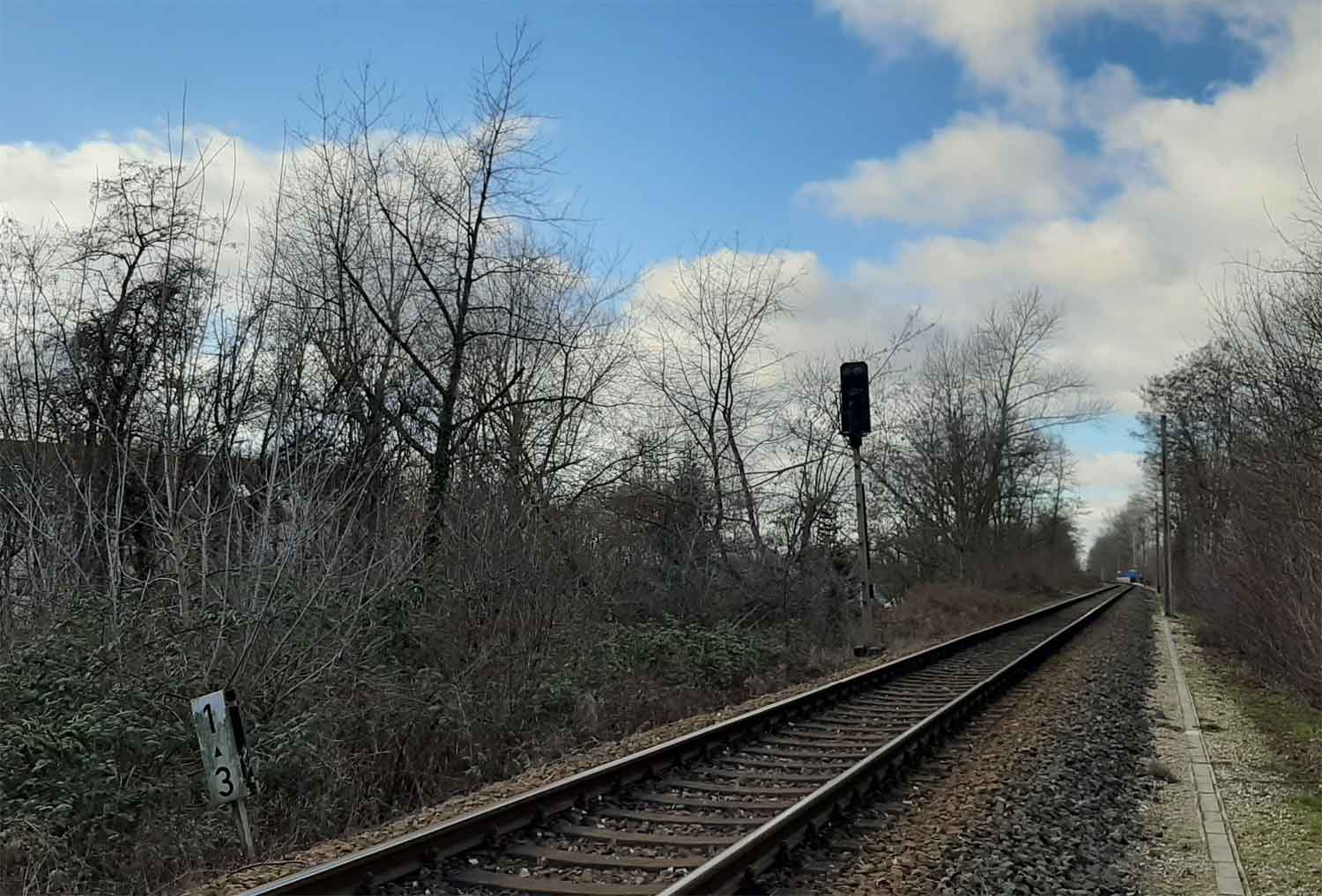 km 2,3 in Espenhain Werkbahnhof - Blick Richtung Böhlen (b Leipzig)