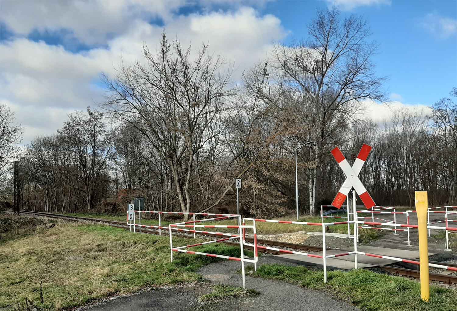 BÜ km 1,6 zwischen Böhlen (b Leipzig) und Rötha - Blick Richtung Espenhain