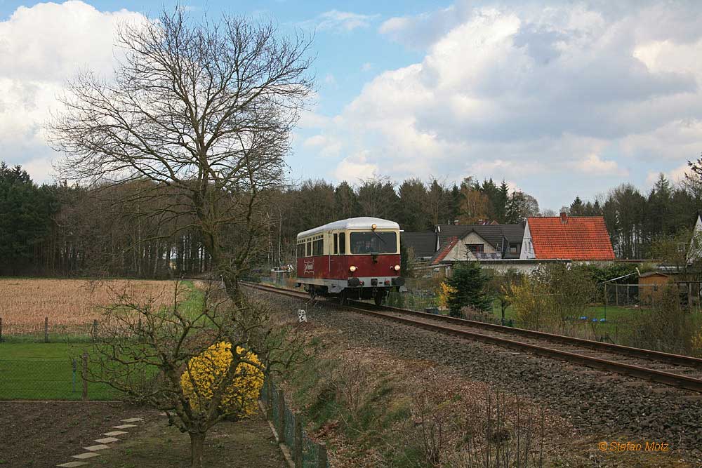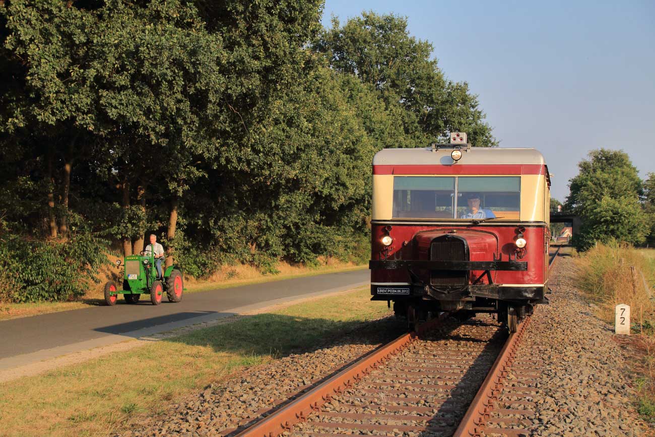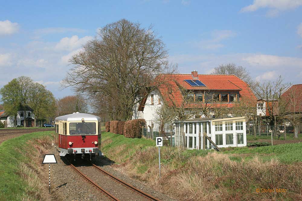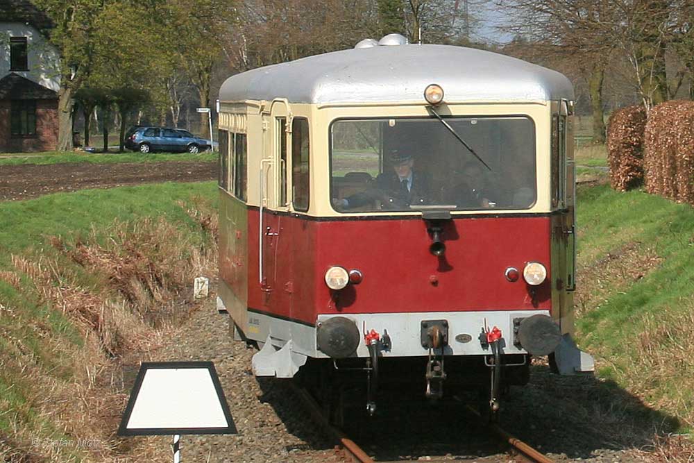 km 7,2 zwischen Annenheide und Groß Mackenstedt - Wismarer Schienenbus "T 1" der "Museumseisenbahn Minden"