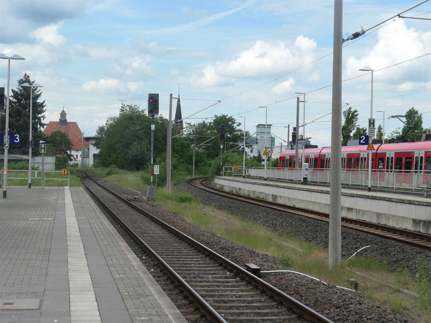 bei km 15,0 (ganz links, Gleis nicht sichtbar) in Ober Roden - Blick Richtung Buchschlag-Sprendlingen