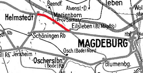 | Eilsleben (Bez Magdeburg) | 0,02 | km 171,68 der Strecke Berlin Potsdamer Bf 0,0 - Magdeburg Hbf 141,87 - Eilsleben (Bez Magdeburg) 171,68 - Grenze Sowjetische Besatungszone/Englische Besatzungszone (Streckenunterbrechung) 183,99 - Schöningen 189,00 |