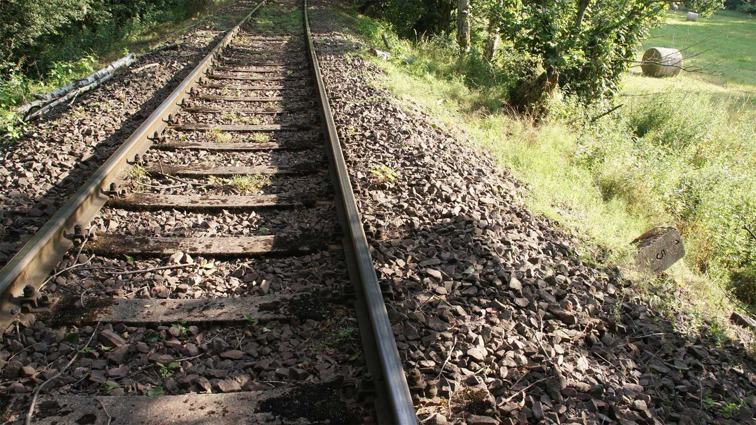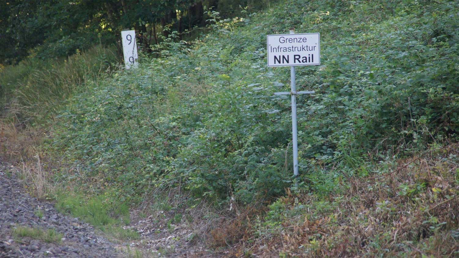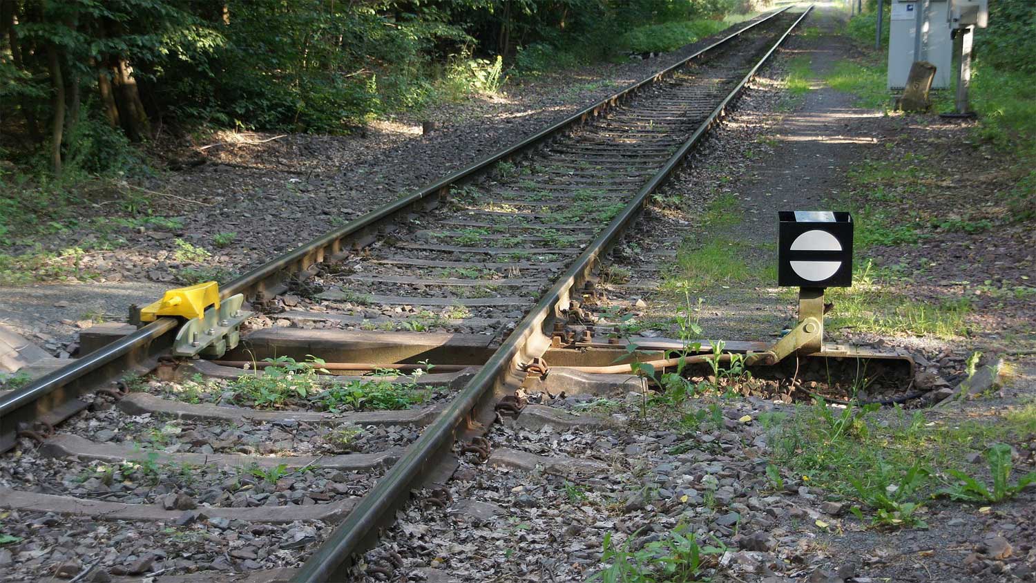 km 0,0 (Weichenspitze) am Abzw Süplingen - Blick Richtung