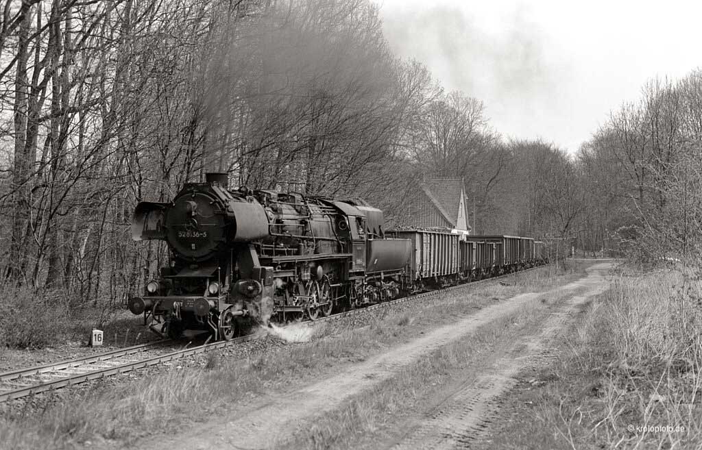 km 0,4 in Haldensleben V 100 und 52 8136 im Bw, dahinter unbekannte 52er Im Vordergrund die Strecke