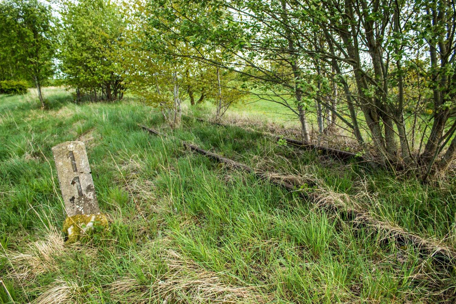 | km 41,33 der Strecke Bleicherode Ost 0,0 - Bischofferode (Eichsfeld) 13,36 - km 14,85 - Streckenunterbrechung - Grenze DDR/BRD 26,594 - Streckenunterbrechung - Rhumspringe 32,36 - Herzberg (Harz) 41,33 | ||