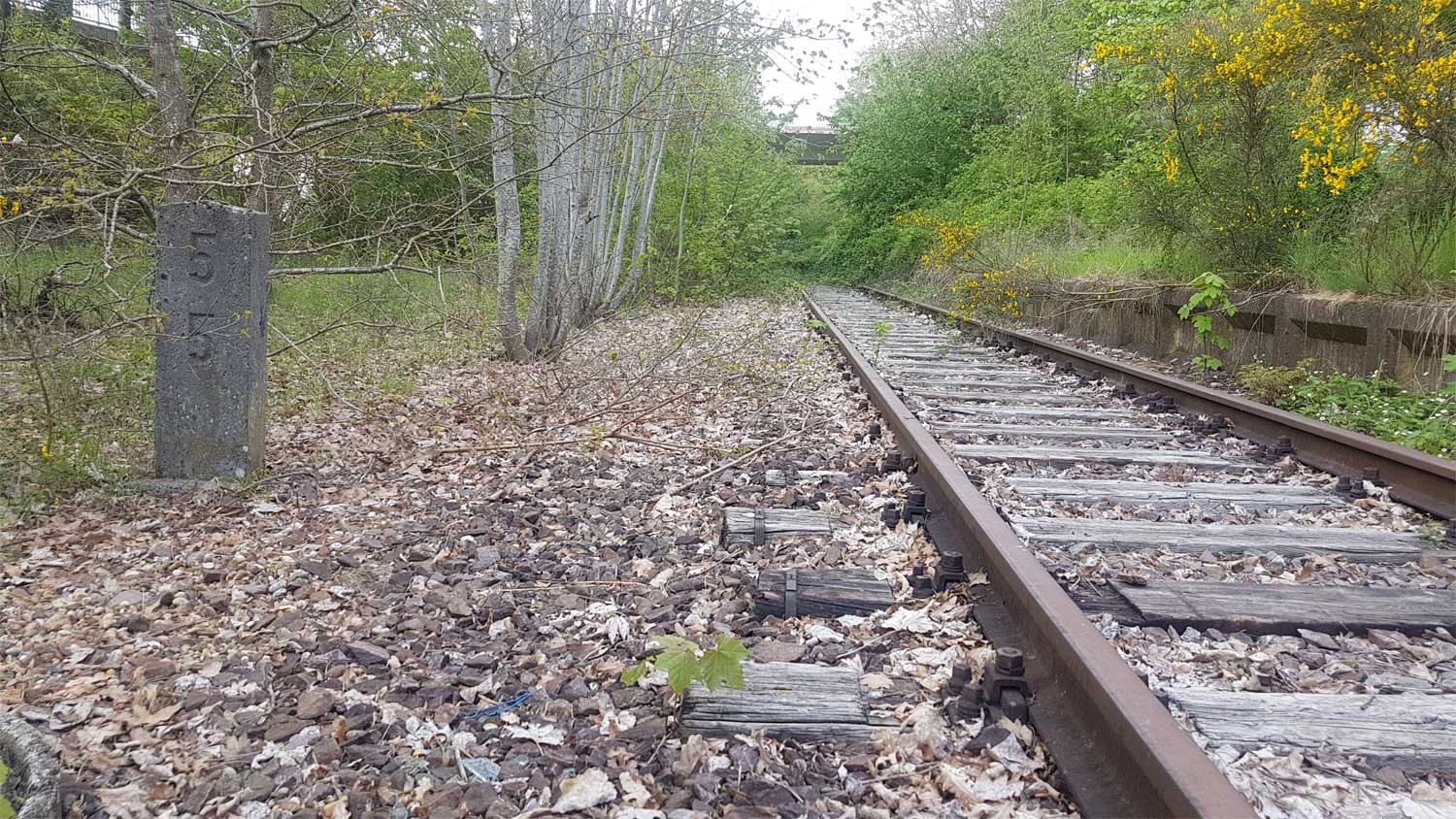 ein Gleis. Der zweigleisige Ausbau zeigt die