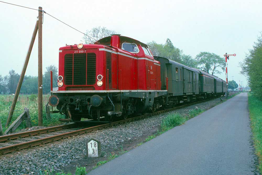 km 20,2 in Harle - letzter Stein der Strecke - 211 252 (Bw Osnabrück) beim Umsetzen