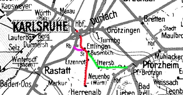 Karlsruhe Albtalbf 0,0 - Ettlingen Stadt 7,0 - Busenbach 10,5 - Bad Herrenalb 25,8 (9420)