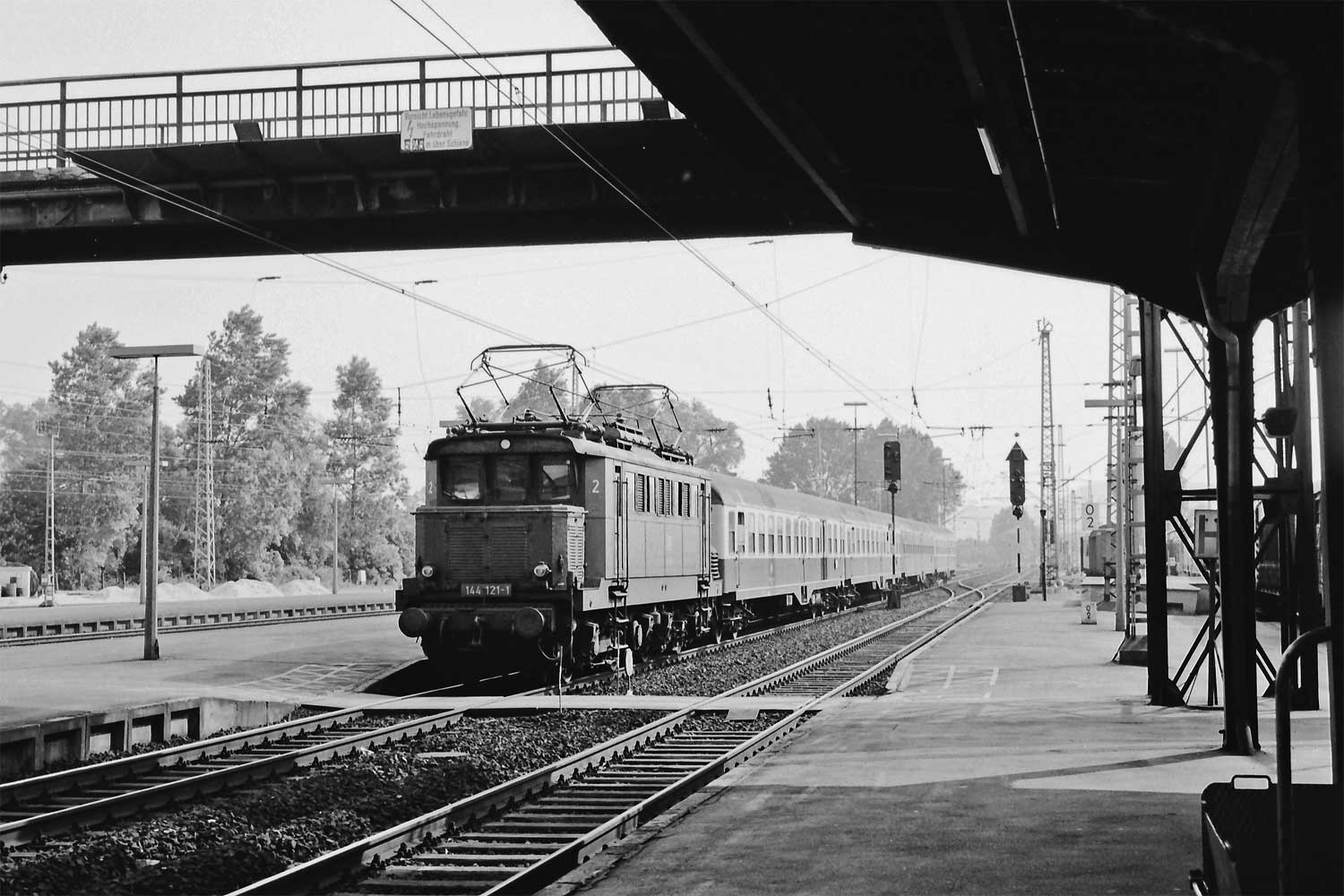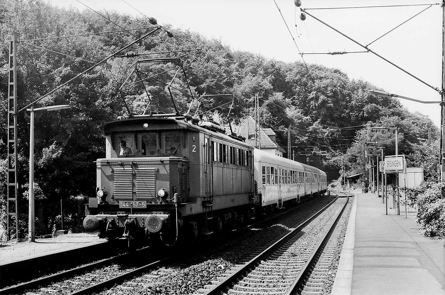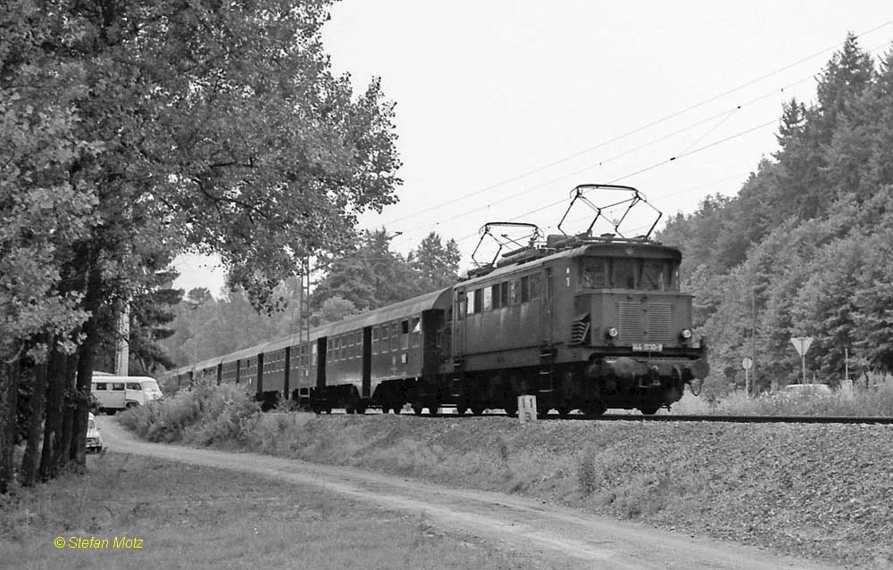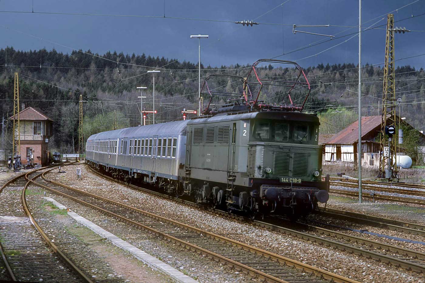Letzter Einsatz der Stuttgarter E 44 - geschmückte 144 034 auf dem Weg nach Pforzheim