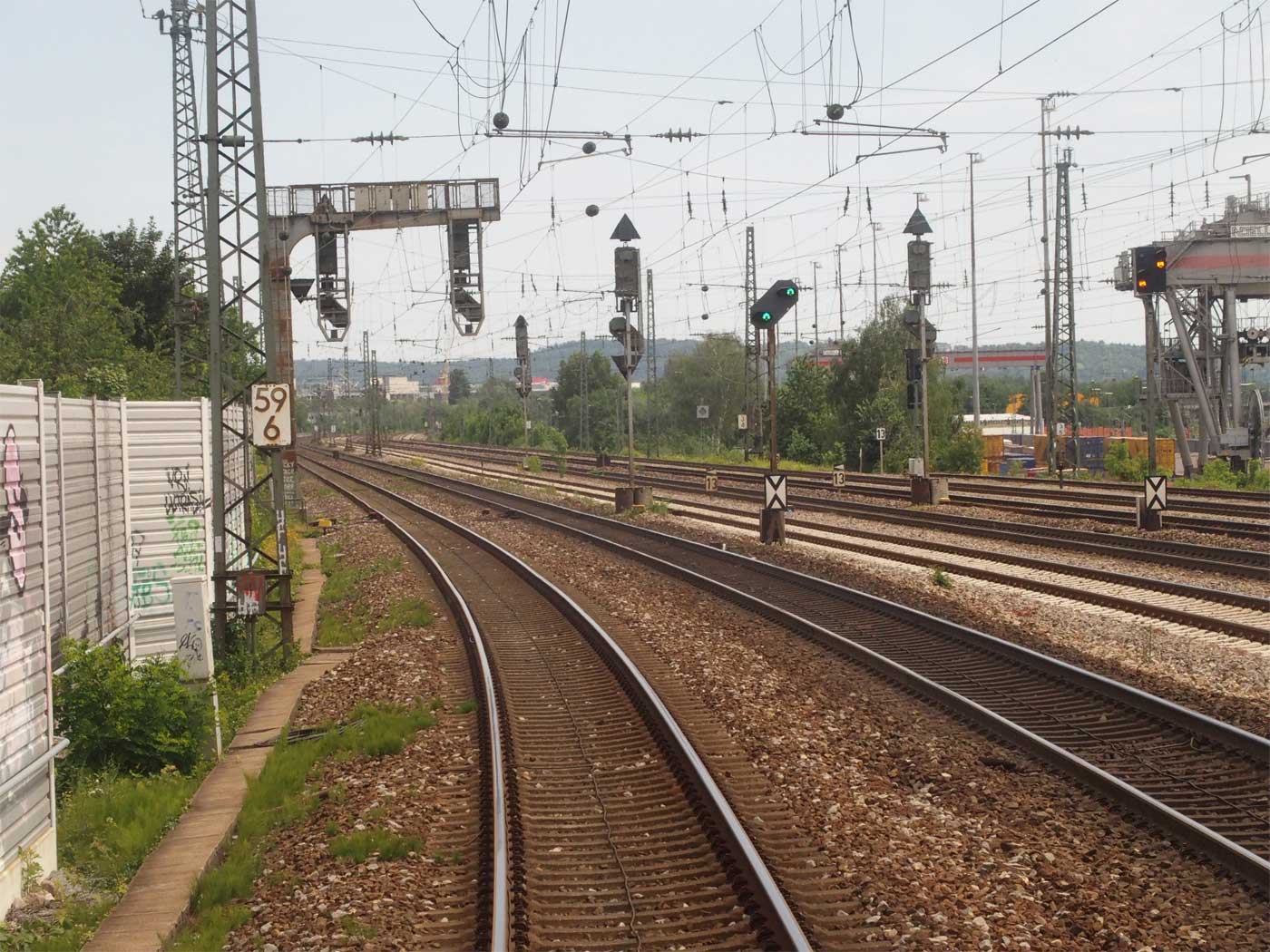 km -1,6 zwischen Karlsruhe Hbf und Karlsruhe-Durlach - Blick Richtung Karlsruhe