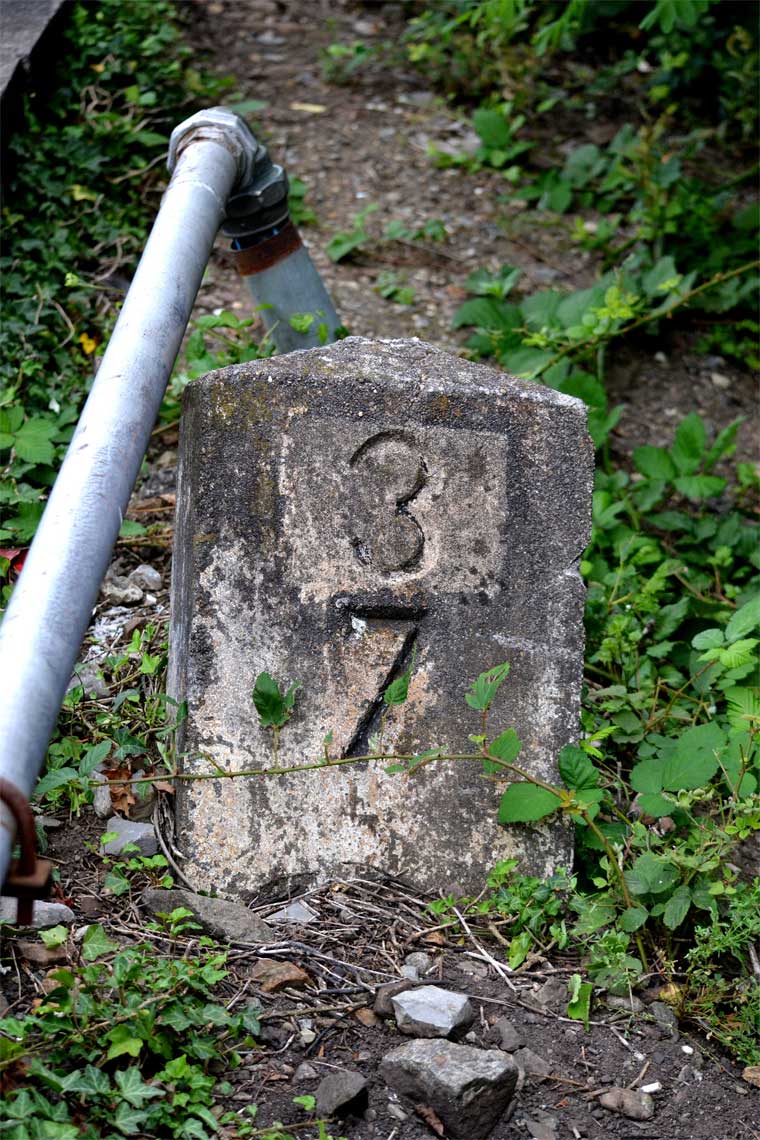 km 12,6 (Tafel) und km 12,7 (Stein) in Wilferdingen-Singen - Blick Richtung Karlsruhe