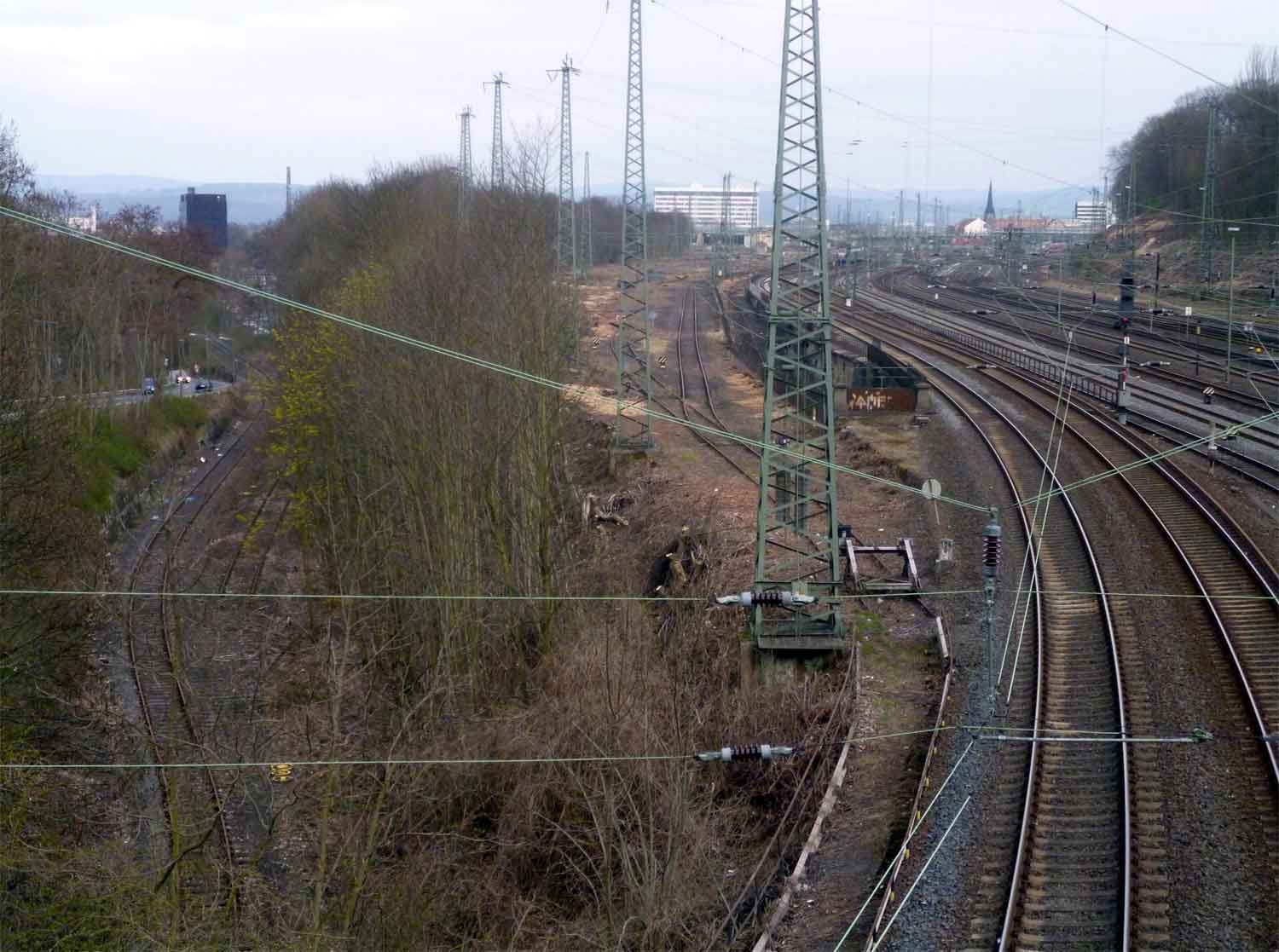 - Blick Richtung Kassel Unterstadt bzw Kassel Hbf Links die Strecke Kassel Hbf, Stw Klb, W 463, km 1,201 - Kassel Unterstadt, Gl 13, km 3,271 (3911) Rechts abgetrennt die Strecke