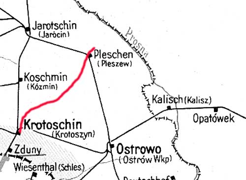 Krotoschin Gaub 0,0 - Pleschen West 35,14 - Pleschen Stadt 38,62 (Spurweite 750