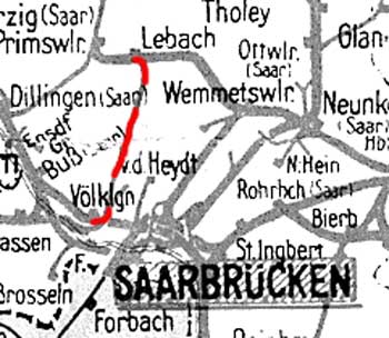 Verlauf der Strecke im Bereich Völklingen bis zum Bau des Heidstock-Tunnels 1914