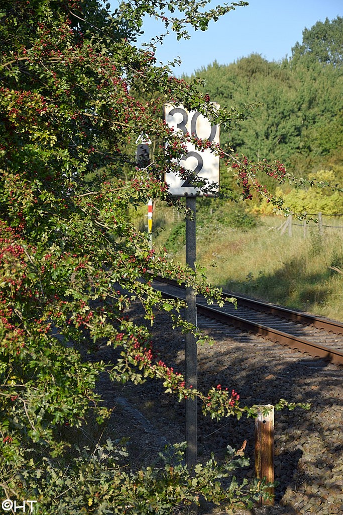 Die rechte Tafel mit km 2,4 gehört zur Strecke