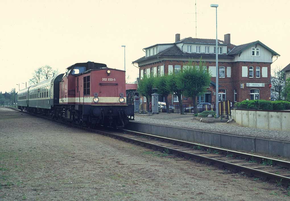 | Malchin | 0,00 | km 156,31 der Strecke Lübeck Hbf 0,0 - Landesgrenze Schleswig-Holstein/Mecklenburg; später Grenze BRD/DDR km 9,517 = km 6,912 - Bad Kleinen 59,32 - Güstrow 113,26 - Malchin 156,31 - Neubrandenburg 200,92 - Landesgrenze Mecklenburg/Preußen 232,26/[62,00 - Strasburg (Uckerm) 60,20 - Pasewalk 41,93 - Grenze DDR/Polen 13,180 - Szczecin Glowny (Stettin Hbf) 0,0] (siehe auch Tabelle 3, Ziffer 14) |