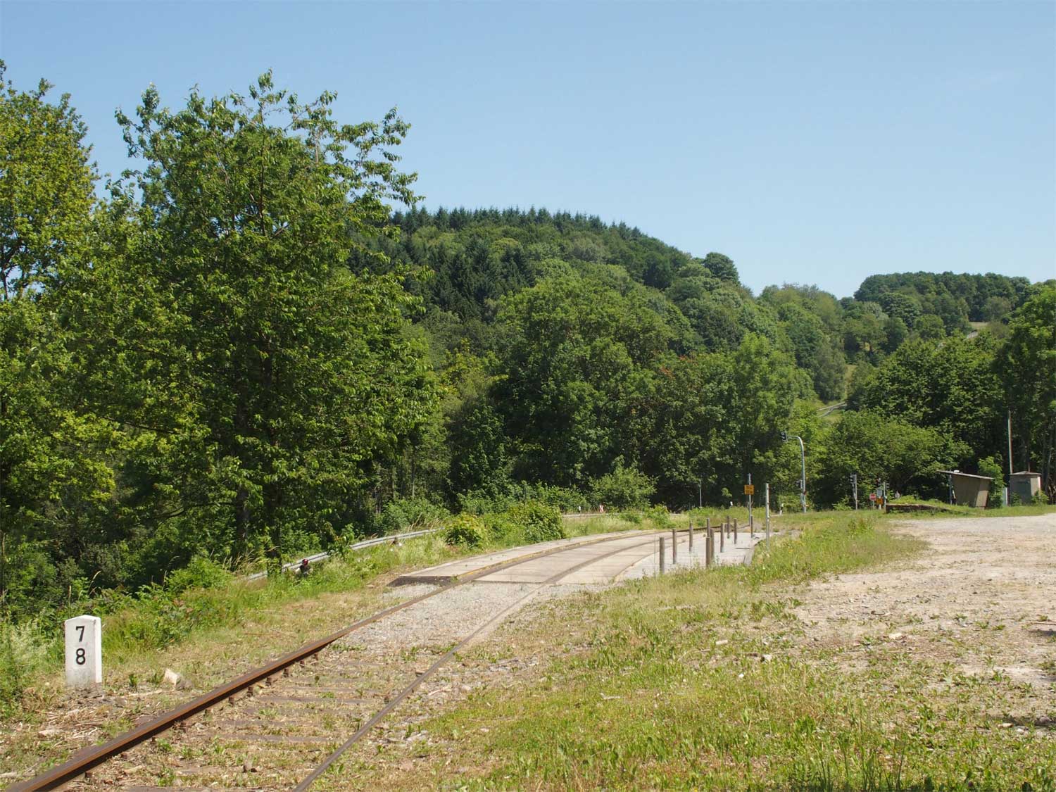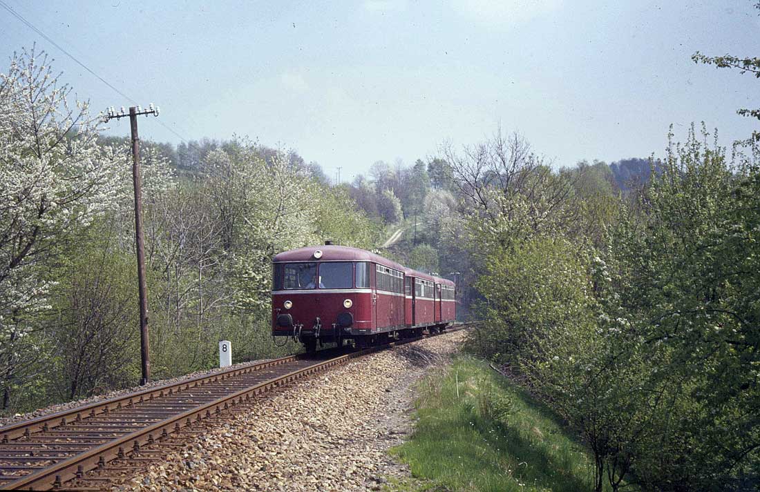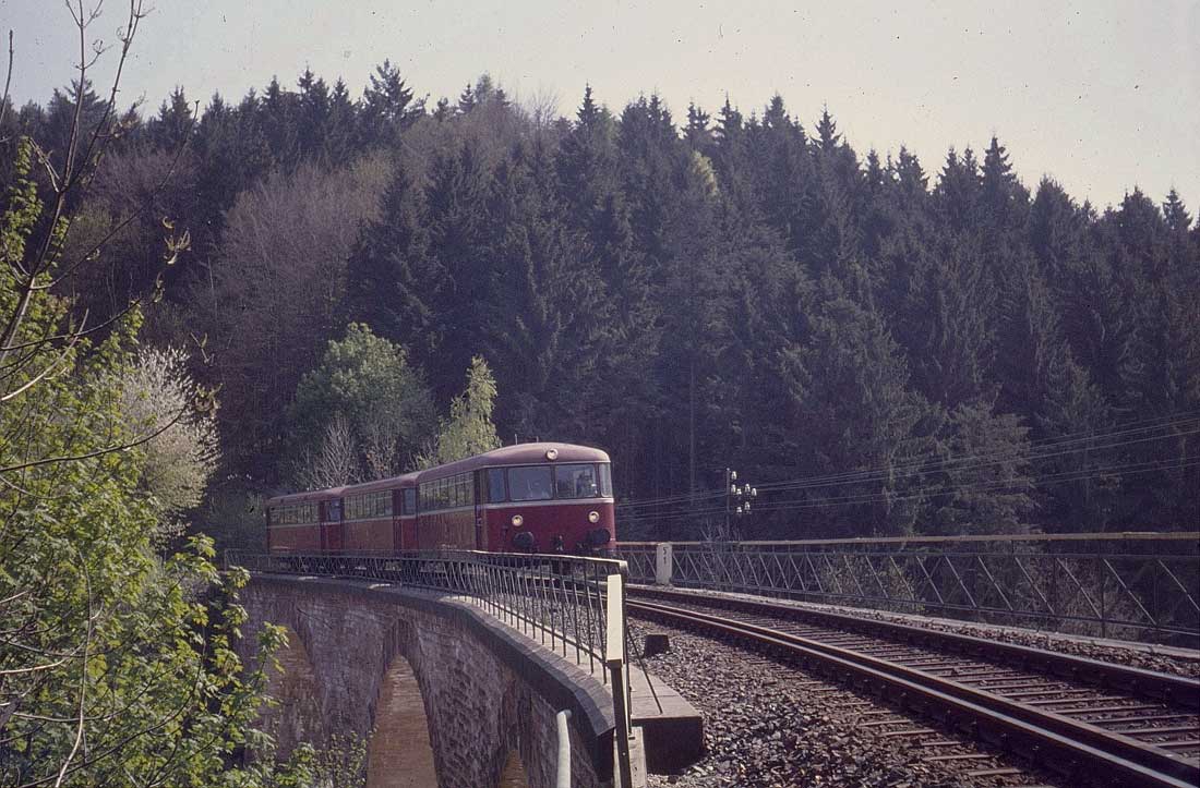 Bei Kilometer 5,1 wurde der Mackenheimer Viadukt mit einer Länge von 73m überquert. Beachtenswert die Führung der Telegrafendrähte.