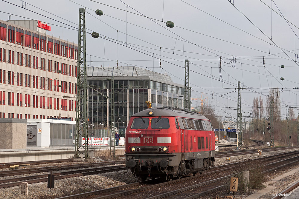 München Süd (5531) zweigleisig mit km 2,6 (Tafel und Stein) und 225 094 München-Laim Rbf - München-Mittersendling (5530) eingleisig Foto: Ingmar Weidig, 08.04.2009