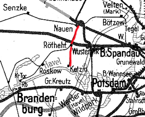 Nauen Klbf 0,0 - Röthehof 7,20 - Ketzin 15,60 - Ketzin Hafen 16,43 (1967)