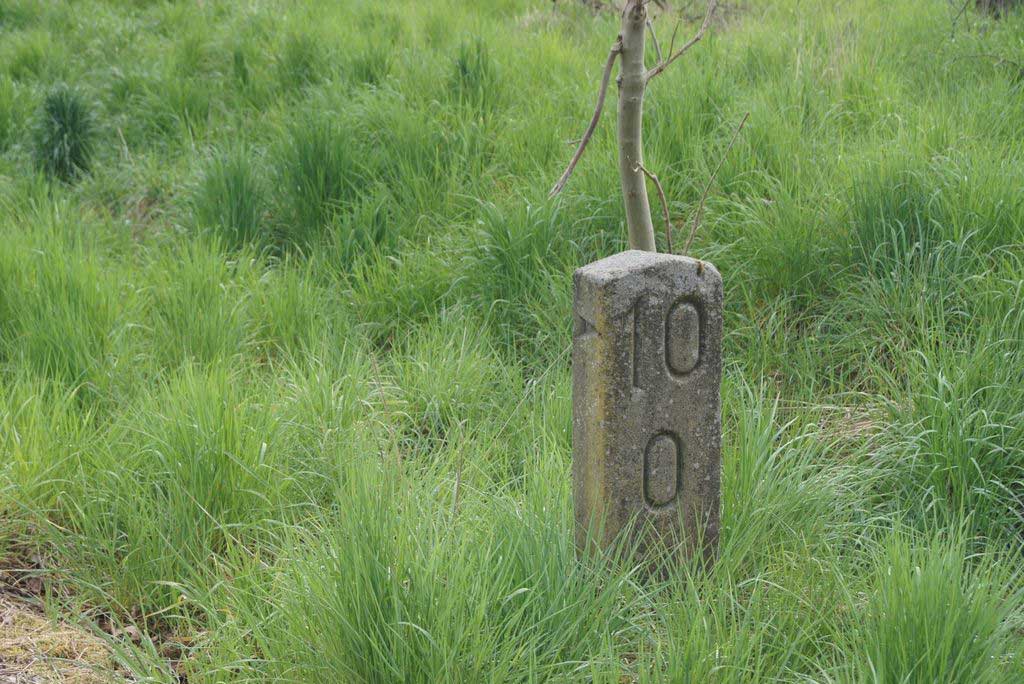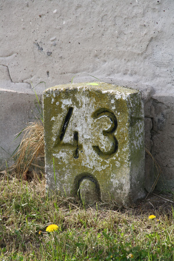 km 3,9 (Stein) und km 4,0 (Tafel) in Barsikow - Blick Richtung Herzberg (Mark)