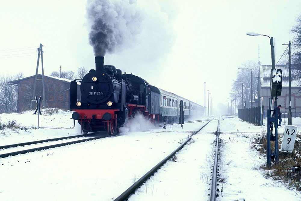 km 42,9 in Herzberg (Mark) - 38 1182 auf der Fahrt in Ri Rheinsberg