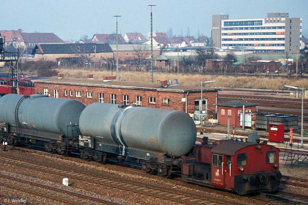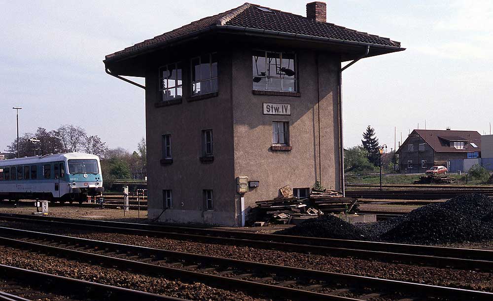 Er stand vor dem ehemaligen Wärterstellwerk in der Rangieranlage.