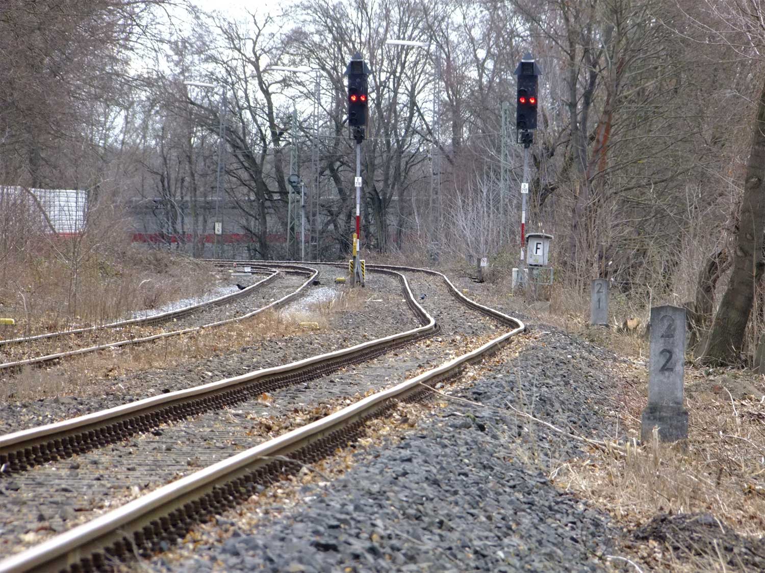 km 2,1 und km 2,2 Links das Gleis der