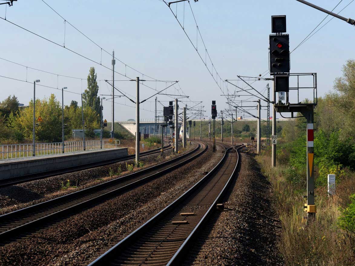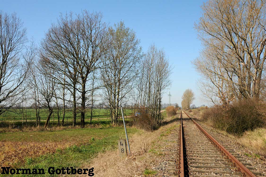 etwa bei km 0,0 (linkes Gleis) in Pratau - Blick Richtung Torgau