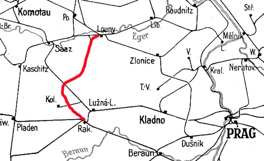 Rakovník (Rakonitz) 0,0 - Louny předměstí (Laun Vorstadt) 44,180 - Louny