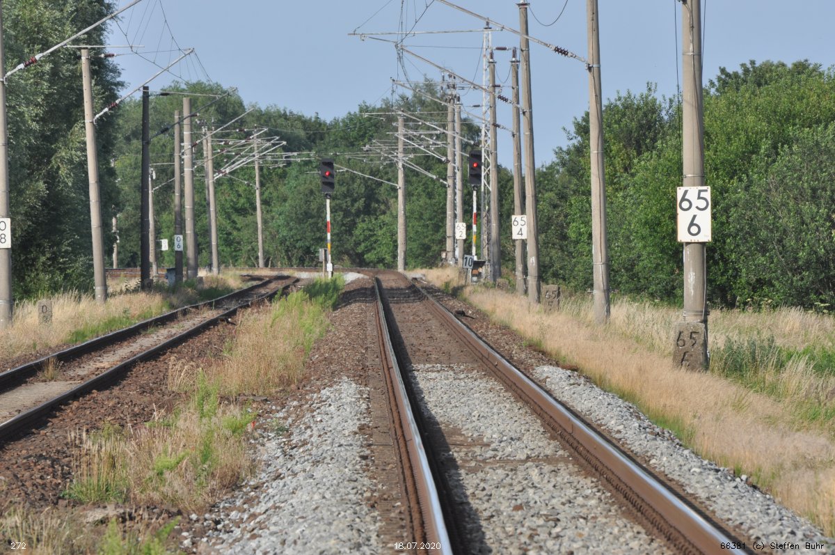 km 65,2 und km 65,4 gehören zur Strecke Stralsund - Rostock Hbf