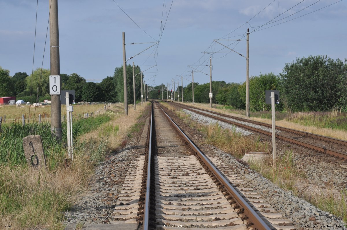 km 1,4 (Stein links) zwischen Abzw Riekdahl und Rostock-Dierkow - Blick Richtung Rostock Seehafen Nord
