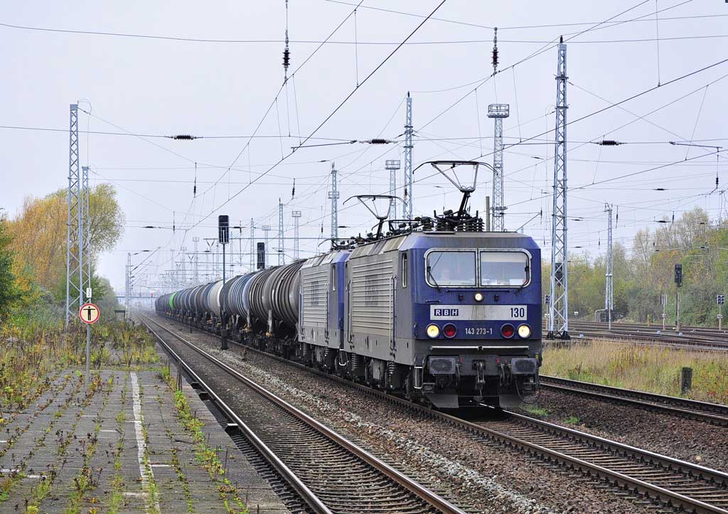 km 11,6 (Stein rechts) in Rostock-Dierkow - RBH 130 (143 273) und RBH 102 (143 069)
