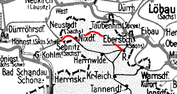 Rumburk (Rumburg) 0,0 - Dolní Poustevna (Nieder Einsiedel) 25,887 - Staatsgrenze Tschechien/Deutschland 26,271 - Sebnitz 27,14
