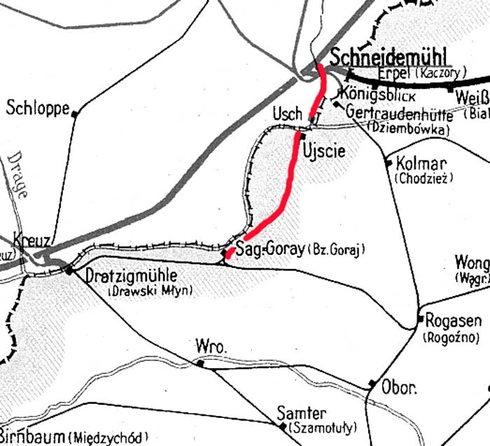 Schneidemühl Pbf 0,0 - Usch 9,83 - Reichsgrenze 10,696 - (Czarnikau - Sagen-Goray)