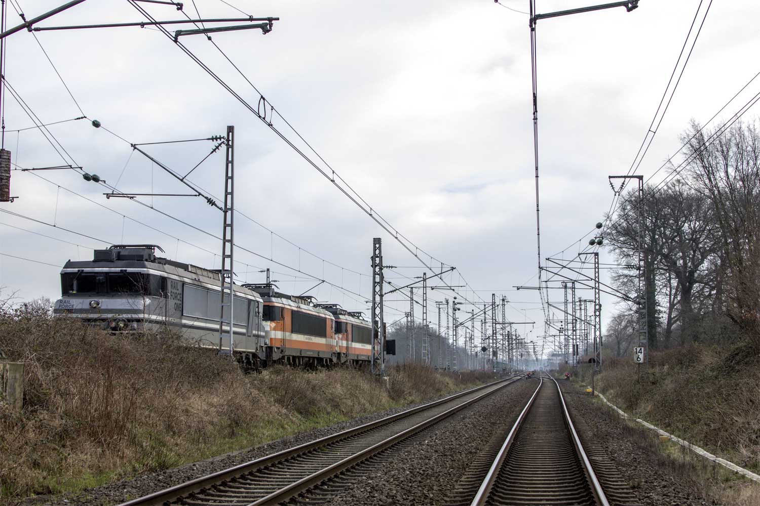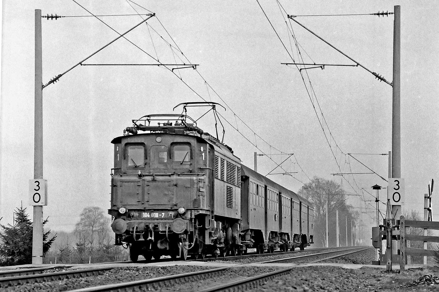 Man beachte auch den Bauartwechsel in der Oberleitungsanlage